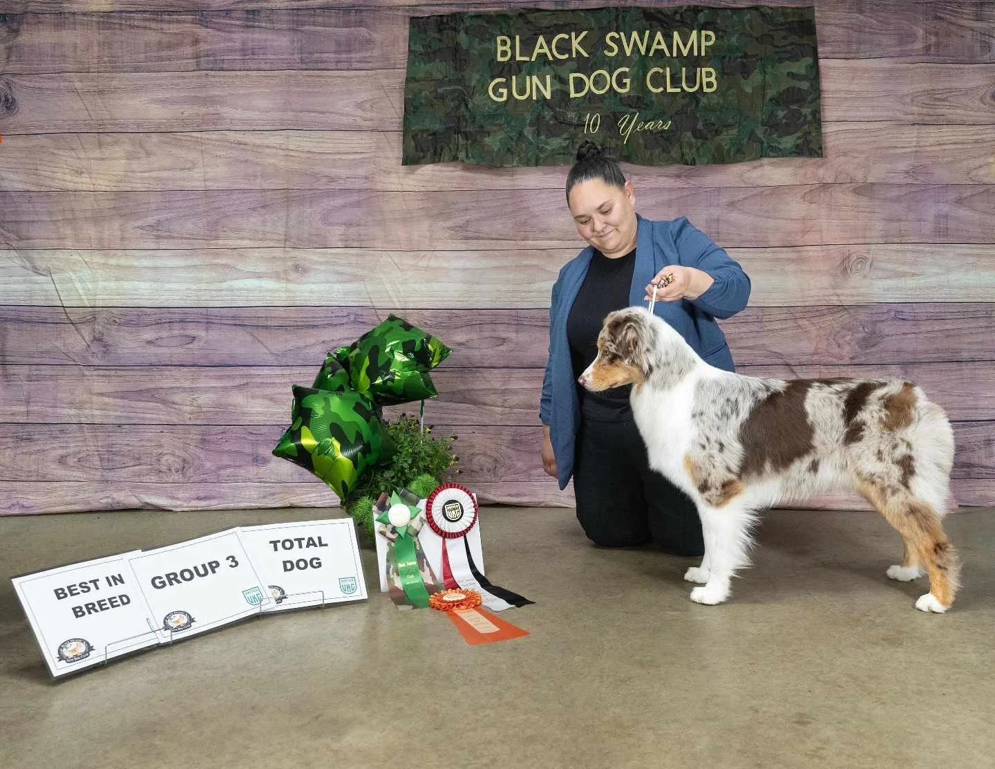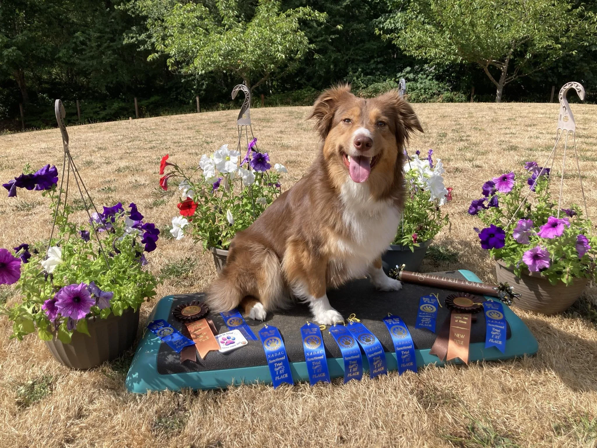 #1 UKC Australian Shepherd for 2024; Multiple UKC Total Dog Qualifier; Multiple UKC Group Placing; 2023 NADD #1 Junior Division All Dogs; NADD Regionals Qualifier 2023; Dock Personal Best 18’6